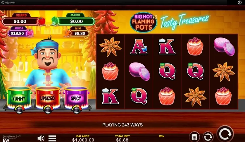 Hrajte automat Big Hot Flaming Pots Tasty Treasures online zdarma v demo režimu bez nutnosti stáhnout si tento výherní automat a bez registrace