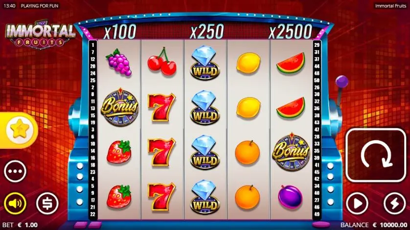 Hrajte automat Immortal Fruits online zdarma v demo režimu bez nutnosti stáhnout si tento výherní automat a bez registrace